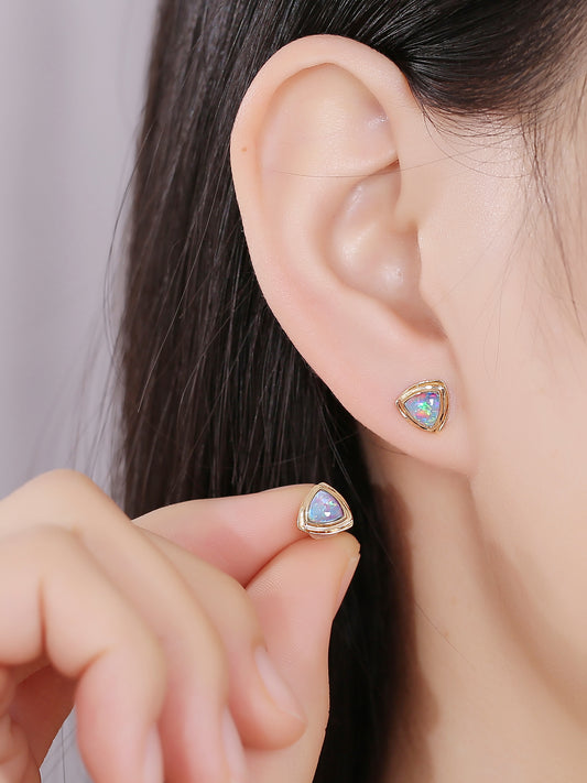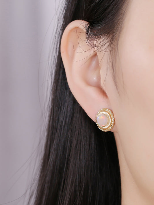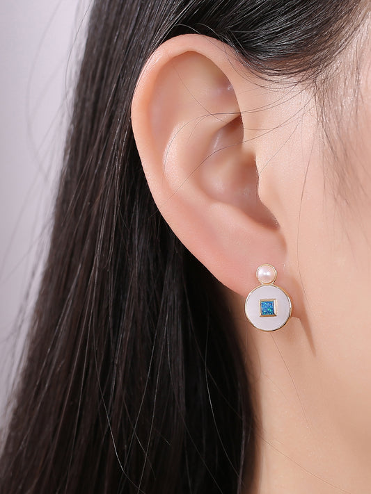 Tong Qian Earrings in 18K Gold with natural opal and mother of pearl
