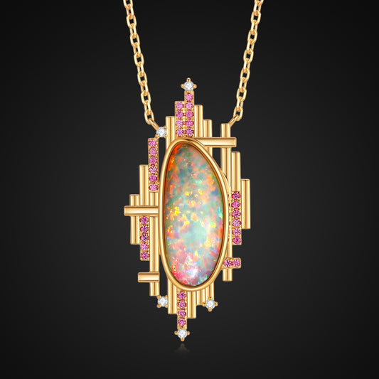 Architectural style Natural Australian White Opal Necklace